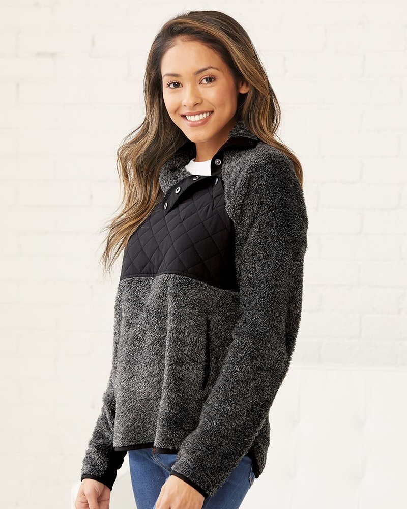 Boxercraft Women's Quilted Fuzzy Fleece Snap Placket Pullover FZ06